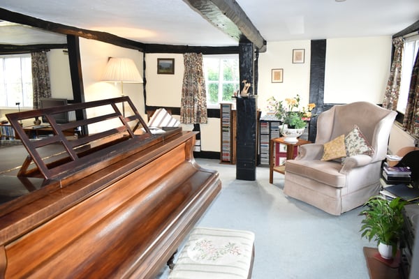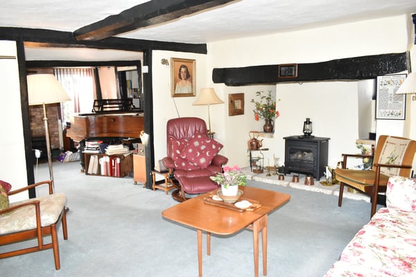 A door leads through to the sitting room with inglenook fireplace with LPG gas fired log burner. An archway leads through to dining room or as the current vendors use it, a music room. Off here is a further reception room which has a door to the rear garden.